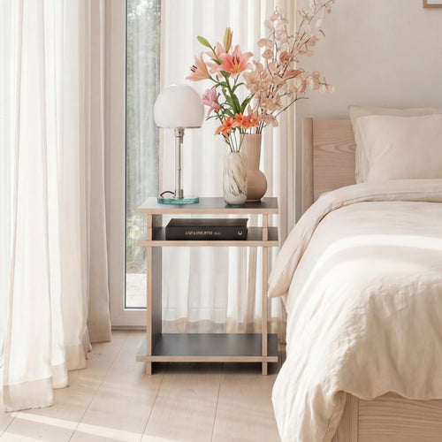 Zwei Elemente: Cubes & Caps. Unsichtbar verbunden durch Magnete. Gestaltet für Regale, Raumtrenner, Sideboards oder Nachttische – modular, stabil, zeitlos.